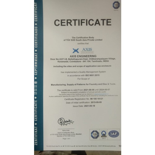We would like to introduce ourselves as leading manufacturers of Metallic / Non Metallic Patterns, Tools, dies and moulds used in Iron and Steel Foundries. We also undertake design castings of all types of engineering components used in automobile, construction machinery, off highway earthmoving equipment, agricultural machinery, Pumps, valves and hydro electricity generation equipments. We have qualified engineering and design professionals with more than Ten years experience in this business. High quality, competitive price, committed deliveries and prompt service after sales support are the benchmark of our organization.